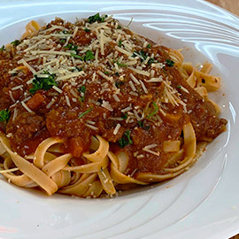 An old traditional meat sauce with any Choice of pasta topped with parmesan Cheese and garnished with parsley.