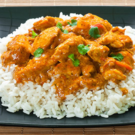 Chunky pieces of chicken cooked in a traditional Curry sauce.