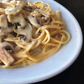 Made with freshly sliced mushrooms cooked in a rich creamy sauce combined with 3 different tasty cheeses.