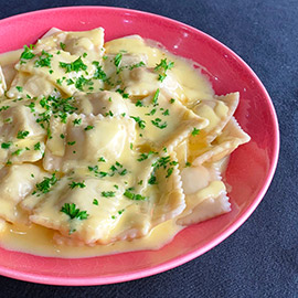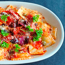 PIZZAIOLA WITH RICOTTA AND SPINACH RAVIOLI.